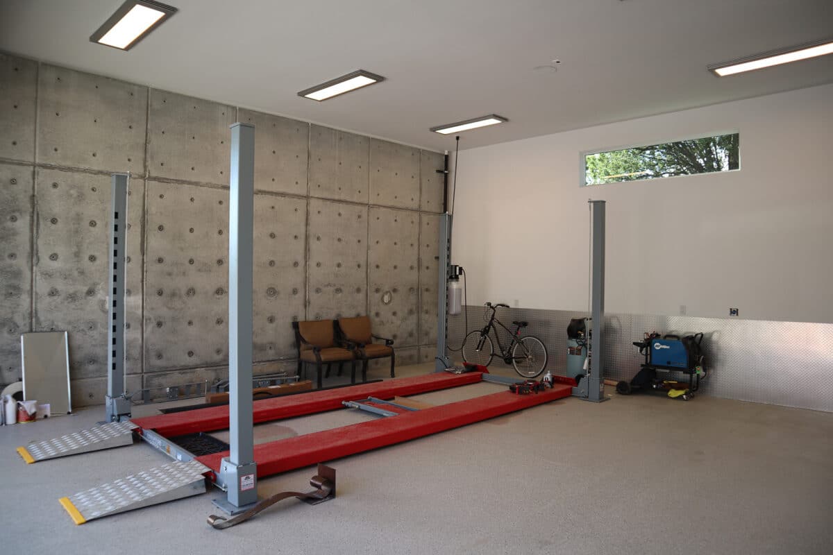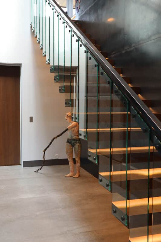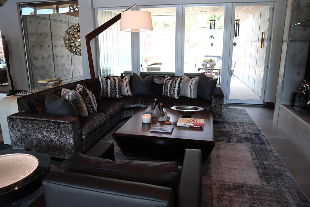 Our commitment to creating spaces that reflect our client’s desires is apparent throughout every aspect of the residence. Expansive windows envelop the interiors in a warm embrace of natural light, while a striking concrete see-through double-sided fireplace acts as an architectural feature, attesting to our mastery and meticulous attention to detail. The flooring, selected for its durability and compatibility with the home’s design, further enhances the ambiance. Adding to this customization is a specialized lighting system from Lutron, which provides electronic access to preset lighting scenes and specialized functions. For added convenience, the names of the lighted areas are thoughtfully engraved on the switches. Each element of this custom home build, from large-scale features to the most nuanced finishes, is a testament to Fine Custom Construction’s expertise and steadfast dedication to realizing our client’s vision. Now, let’s explore the individual features that highlight the home’s distinct luxury and bespoke design.